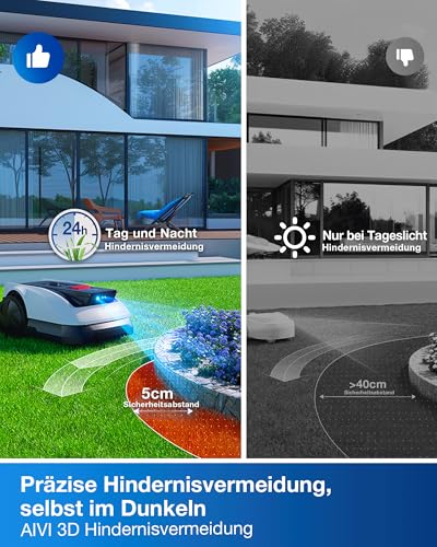 - Erkennt über 200 Hindernisarten: Im Vergleich zu Ultraschallsensoren oder Stoßfängern kann ECOVACS’ AIVI 3D mit einer 150°-Fischaugen-Kamera, unterstützt durch fortschrittliche KI-Algorithmen, und einem 3D-ToF-LiDAR über 200 gängige Gartenobjekte erkennen und Hindernisse vermeiden. Der 3D-ToF-LiDAR misst zudem präzise die Distanz zu Hindernissen, um extrem nahes Stoppen zu ermöglichen. Diese Technologie sorgt für eine hervorragende Hindernisvermeidung und erhöht die Sicherheit im Garten erheblich bei nur minimal ausgelassenen Mähflächen.