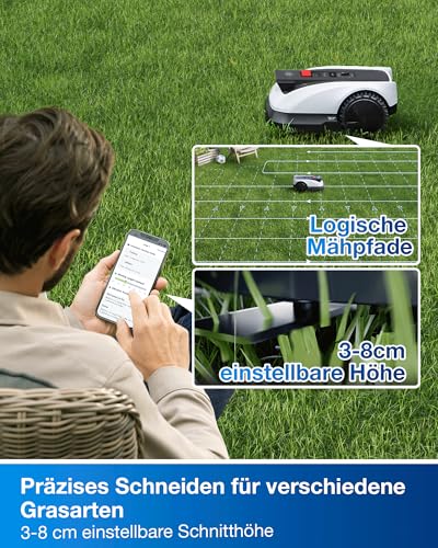 | Hinweis zur Genauigkeit | Angaben basieren auf Herstellerangaben, Tests und Händlerinformationen; reale Werte hängen von Gelände, Rasenbeschaffenheit, Wetter und App‑Einstellungen ab. |